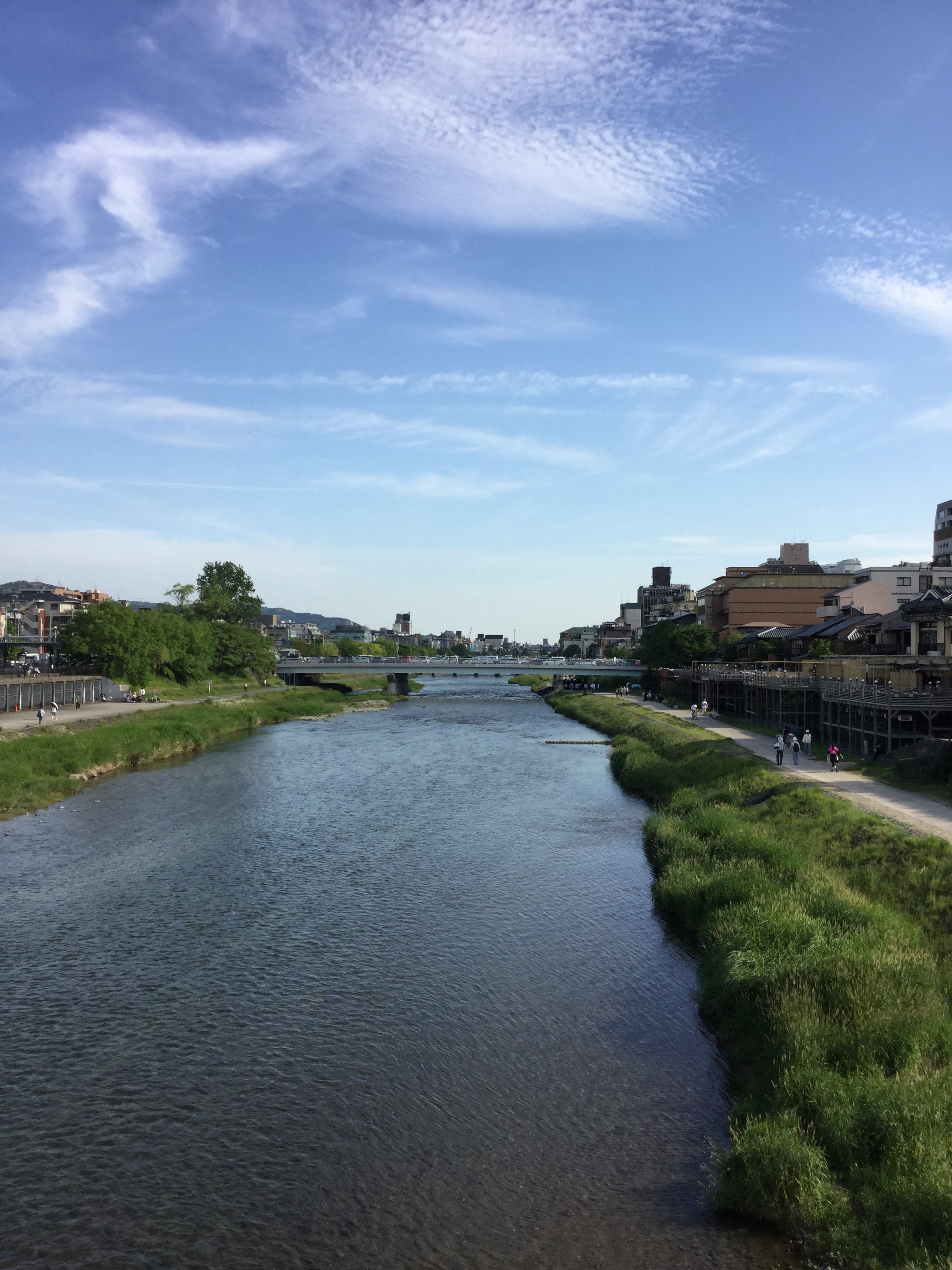 I visited Kyoto in May 2018. I took a photo of the southern view of Kamo River from Nijo Ohashi.