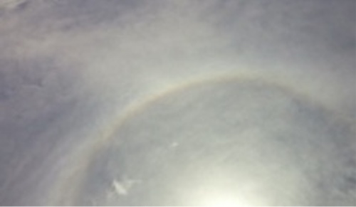 This is a 22 degree halo around the Sun. I observed it and took this photo at Miurakaigan station on the 8th of September 2016 in the institute's summer school.