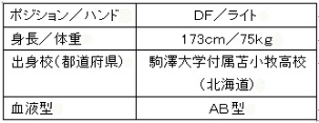 ――どうして立教を選んだ? 高校はアイスホッケーが強いという理由だけで選んで勉学の面ではおろそかにしていた部分があったので、大学では社会人になる一歩手前として文武両道が当たり前かなと考え、しっかりと受験がある立教を選びました。(その選択はどうだった?)全然悔いはないですね。立教に入ってよかったです。 ――大河さんのアイホ人生 スタートは年長かな?自分で言うのもあれだけど結構エリートで(笑)高校上がってからは全然でしたけど。大学も立教受からなかったら専門学校行こうとしてましたね。 ――いろんな人と関わった中で、1番感謝を伝えたい人は? 土永ですね。2年生の時に土永と泣きながらケンカしたこともあったんですけど、同期で初心者は土永だけで、しかもキーパーというとても重圧のかかるポジションを任せてしまったんですけど、最終的にあそこまでいいキーパーになってくれたので。 プロフィール