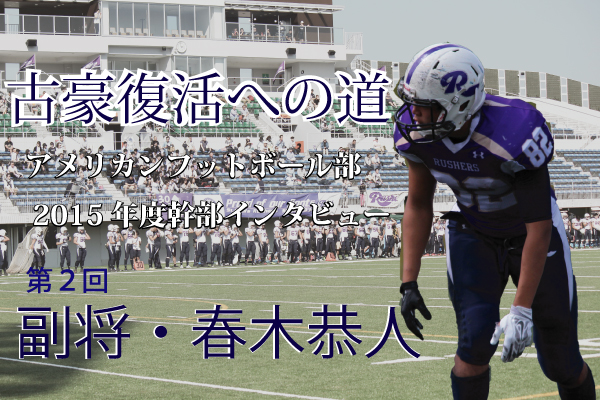 同立・桃山学院定期戦での連勝から2週間、まもなく関東の頂点、日大PHOENIXと対戦します。どんな相手にでも全力で立ち向かっていくRushersの姿勢はこの試合でも変わりません。 幹部インタビュー第2回はオフェンスの要として毎試合鋭いプレーを見せる、副将・春木恭人(営4)です。