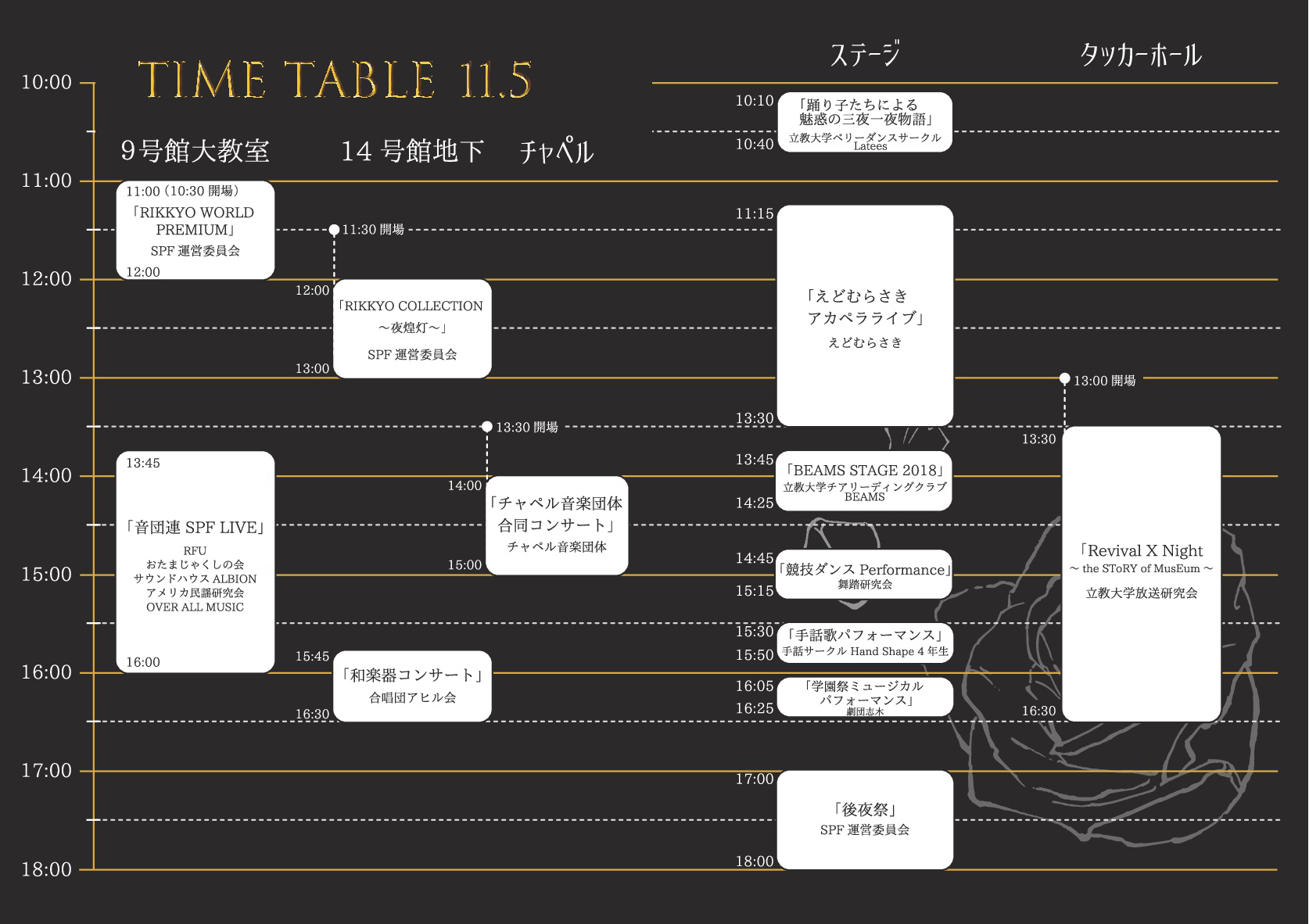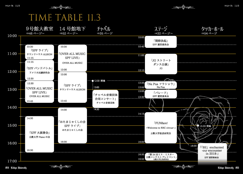 毎年恒例!spfの始めと終わりを彩る開祭決起と後夜祭。今年はさらに立教生たちが練り歩くパレードがあります!