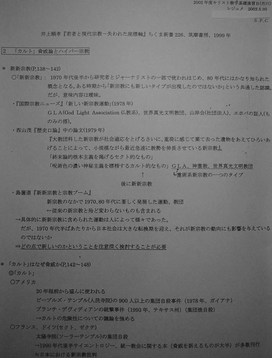 キリスト教学基礎演習B 2002年 第 4 回