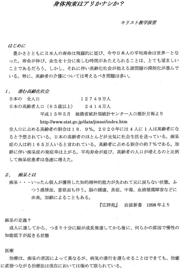 キリスト教学演習 6 2003年度 後期 第 5 回 レジュメ