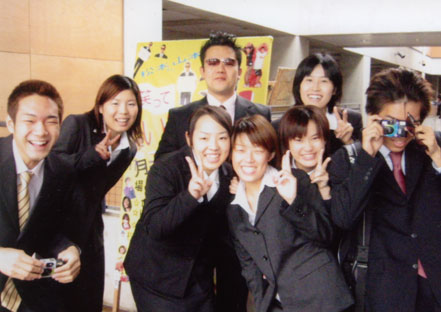 部室前にて。エガちゃんの持っているカメラにはさやかが写っていることでしょう。
